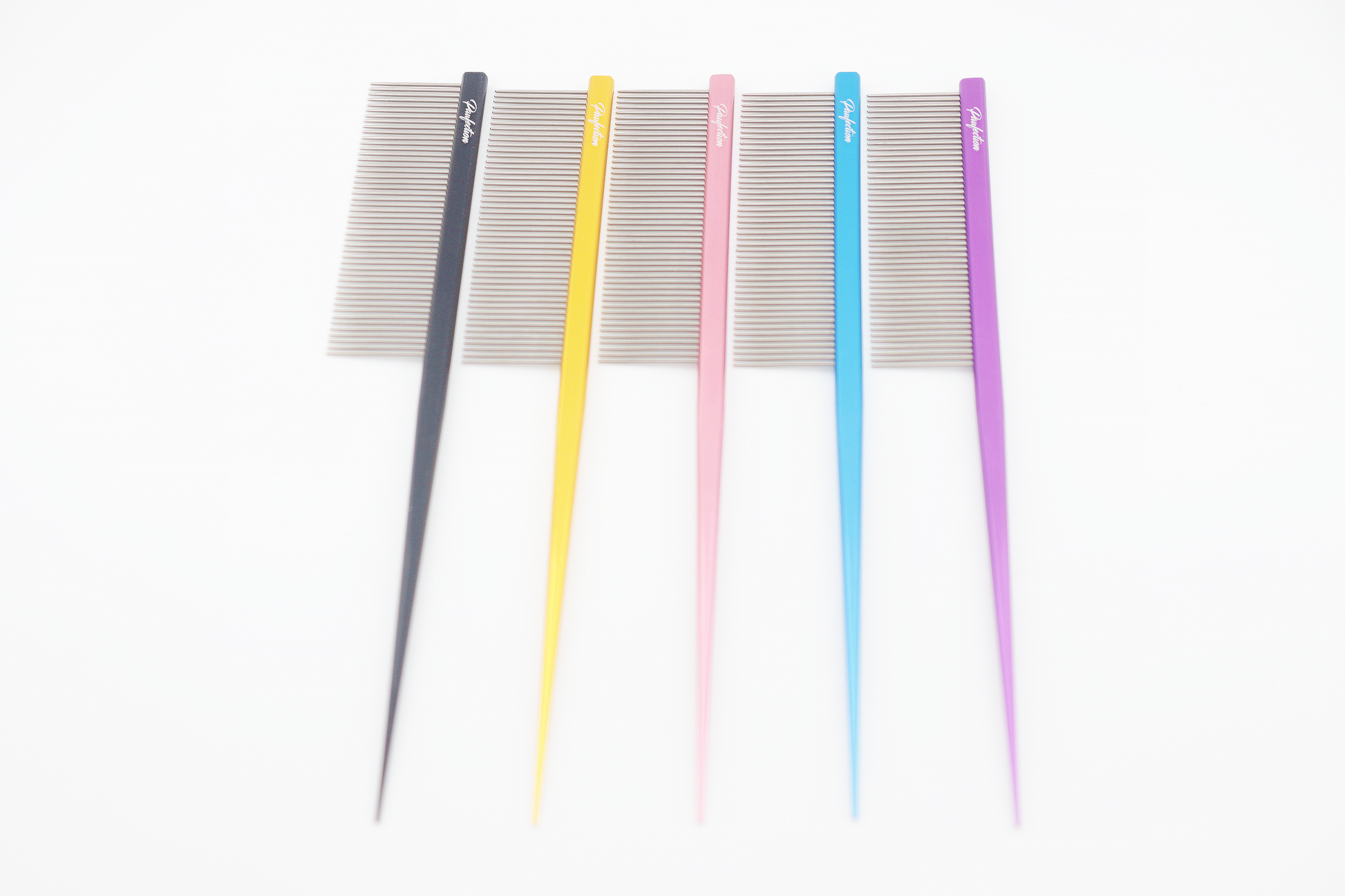 Pawfection brand 7.25" pin tail comb. Available in pink, gold, blue, purple and black.