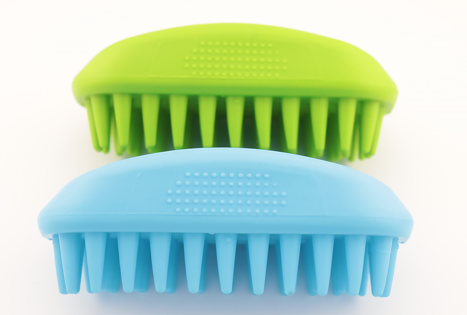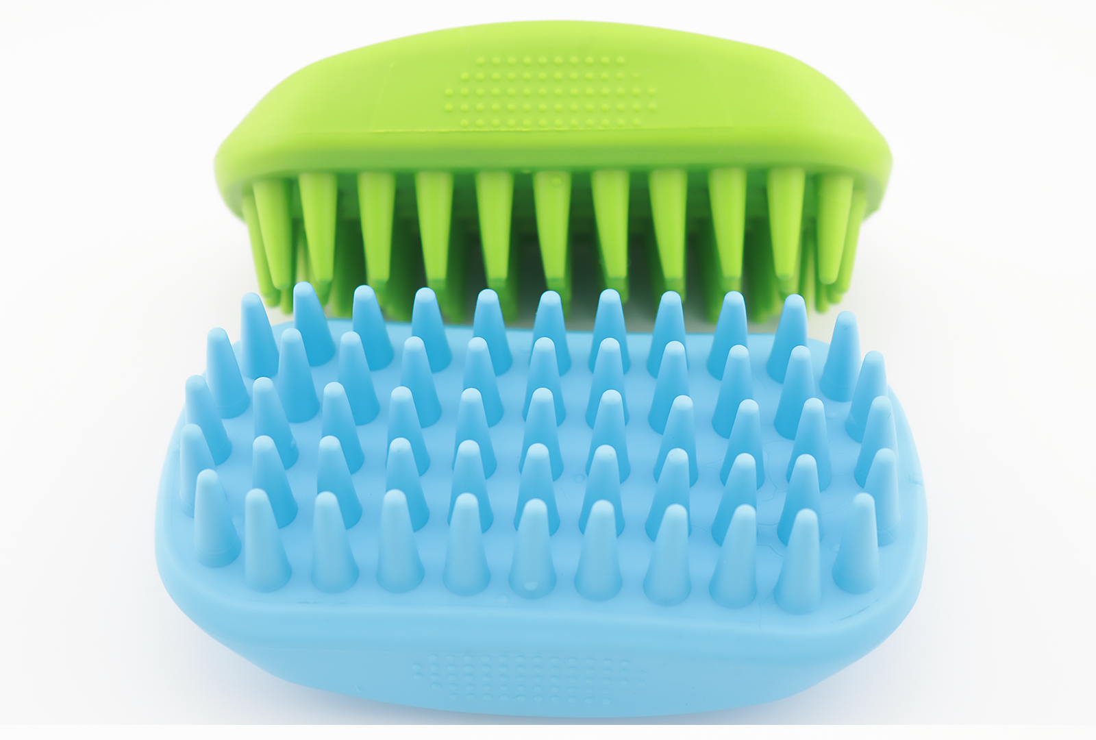 Sturdy rubber brushes to assist with loosening up undercoat comes in blue and green